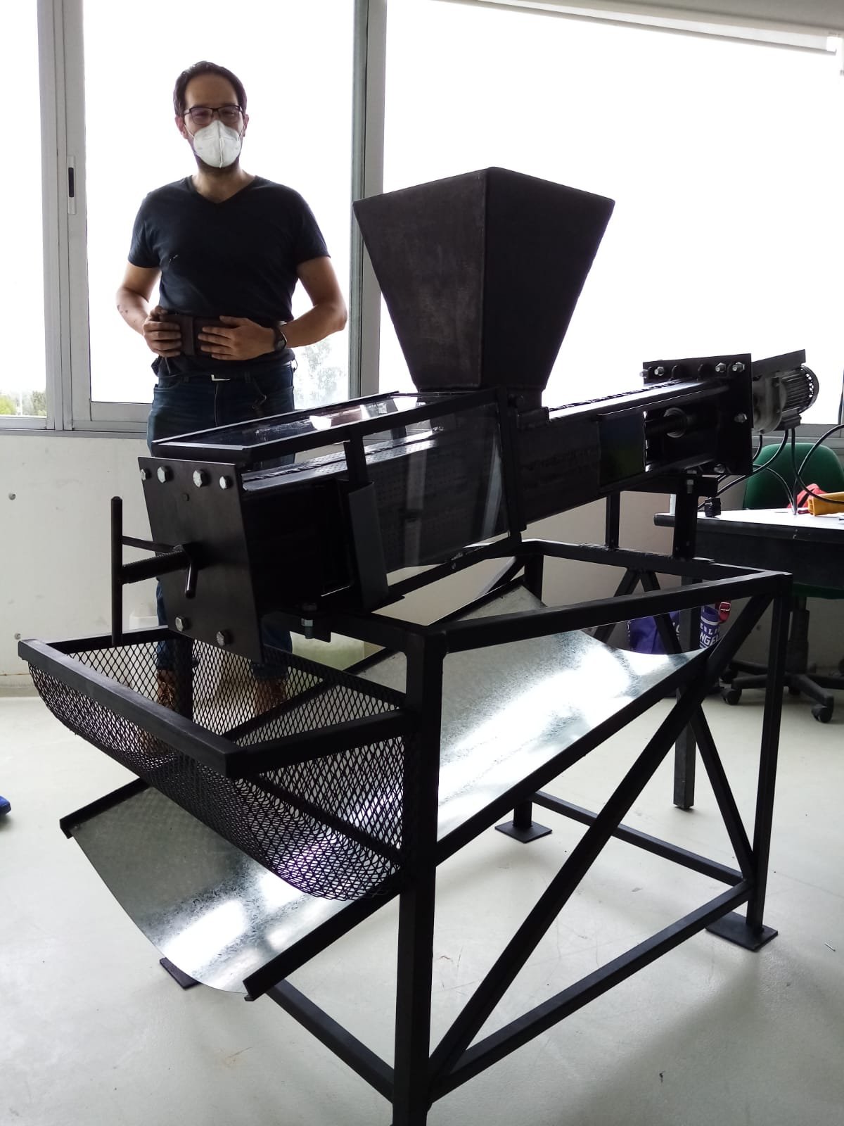 I designed this machine to facilitate optical inspection on cowhides as raw material to assign a quality grade depending on the number of defects found on them. The novel idea is to use multilayer rollers, made of solid material in the center and soft and fibrous material on the outside, in order to press and tense the cowhide to force it into an even plane without damaging it.